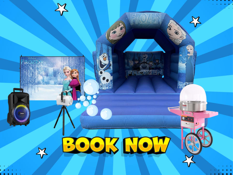 Frozen-themed bouncy castle|Bluetooth party speaker|Bubble machine| Candy floss machine| Backdrop & props