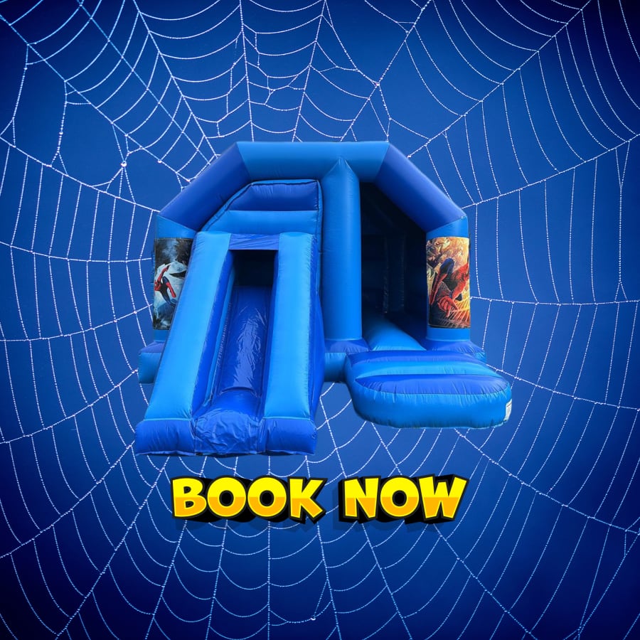 Make your child’s party superhero-themed and unforgettable with our exciting Spider-Man bouncy castle with slide. This vibrant blue inflatable features a spacious bouncing area and a fun front slide, giving kids the perfect place to jump, climb and slide for hours of entertainment.